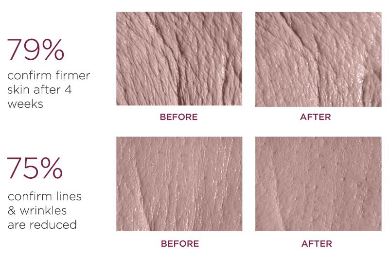 A study confirms that after 28 days use, 79%* confirm firmer skin around the eyes and lips. 75%* confirm lines & wrinkles are reduced.